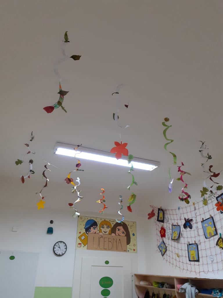 Při vycházkách se školní družinou děti nasbíraly barevné listí, které následně využily při tvorbě podzimní dekorace. Nejen příroda, ale teď i naše škola hraje podzimními barvami.