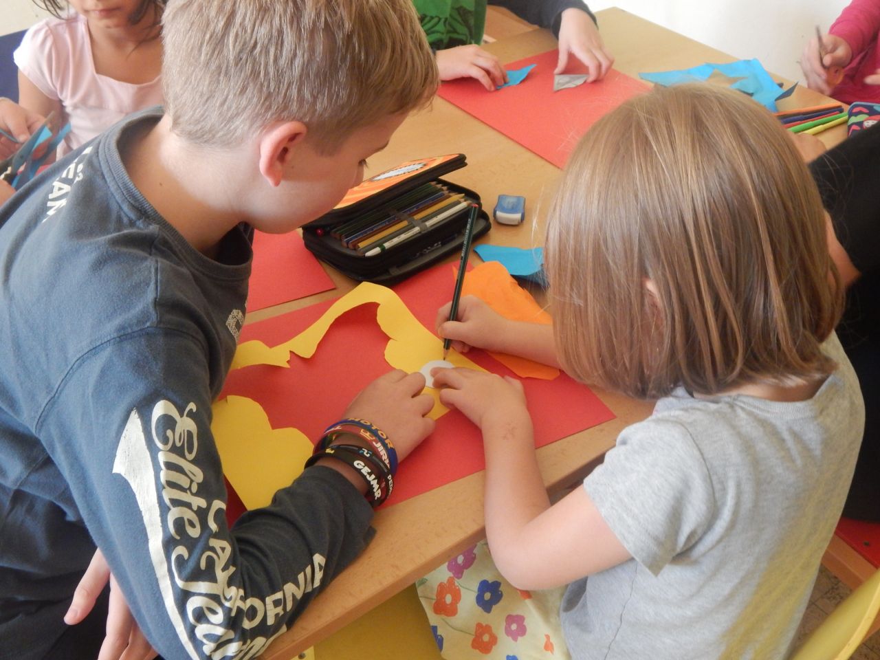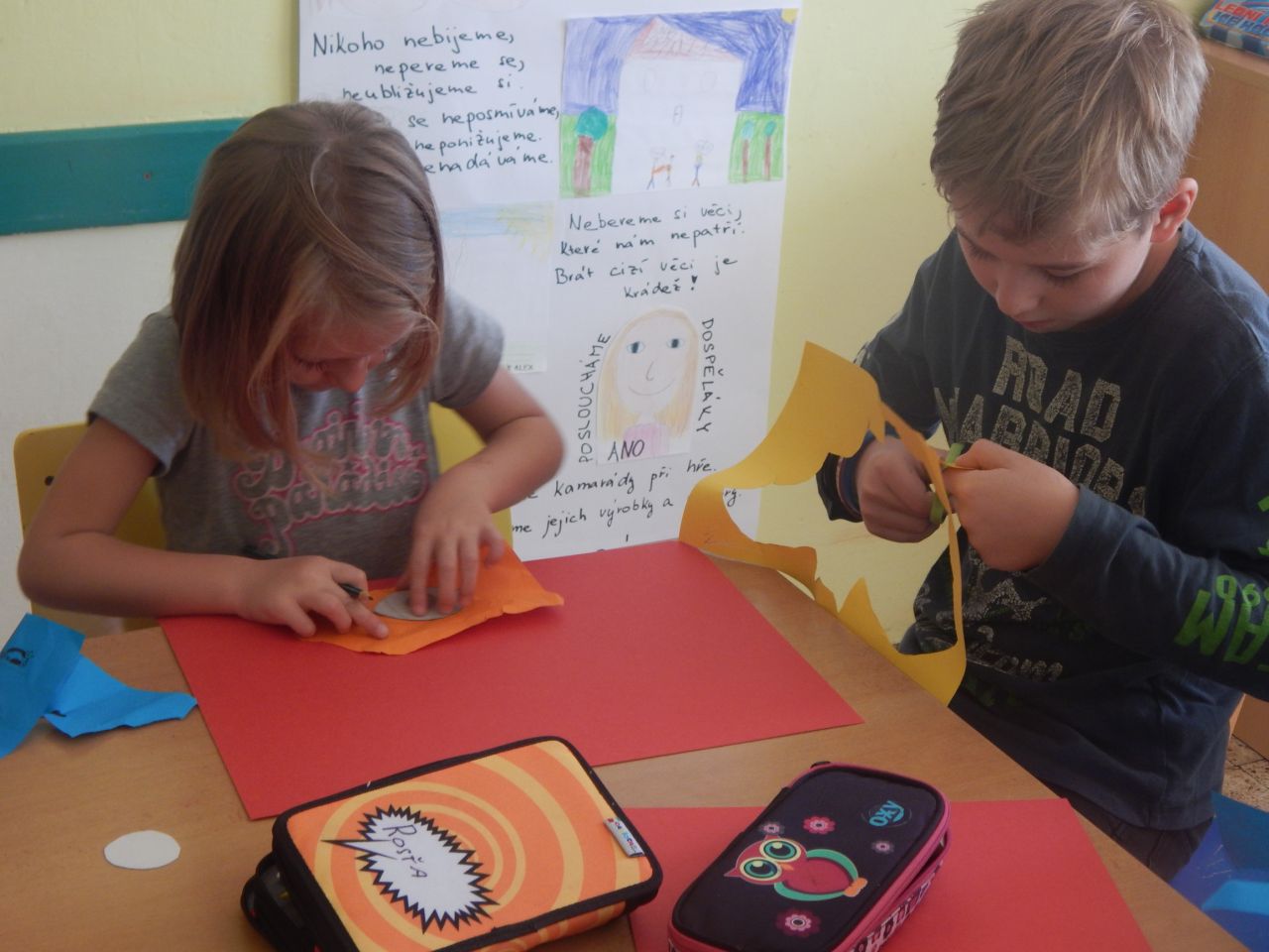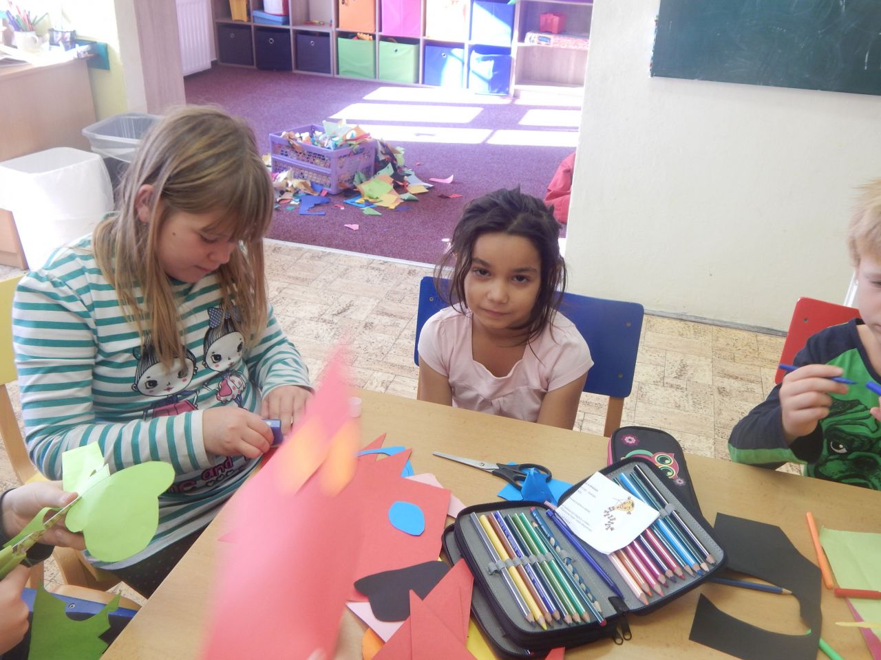 V tomto školním roce se naši nejstarší žáci stali patrony předškoláků. Každý z předškoláků získal staršího kamaráda, který mu pomáhá poznávat prostředí školy, společně se zapojují do různých činností. V naší fotogalerii najdete fotografie z vyrábění dráčků pro Drakiádu.