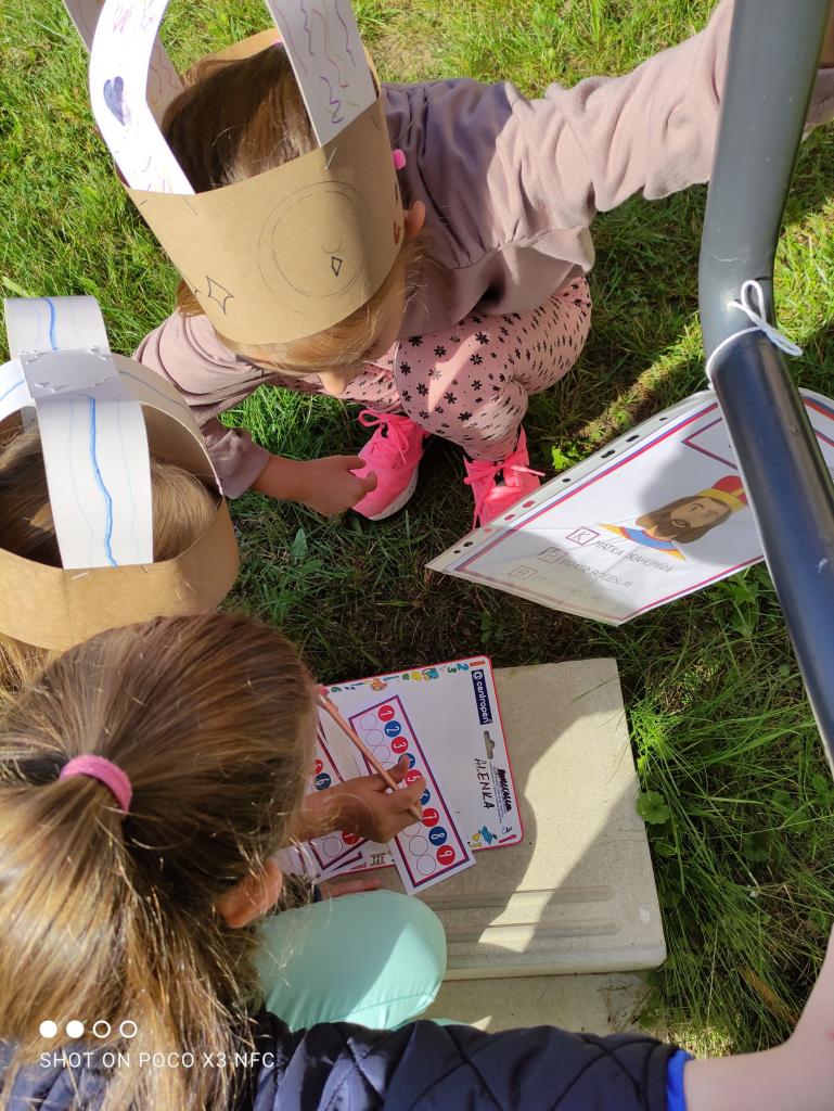 Děti z prvního a druhého ročníku vytvořily v úvodu projektového dne za pomoci barev státní vlajky skupiny, ve kterých pracovaly na zadaných úkolech. Společně sledovaly videa s tematikou sv. Václava. Následovala naučná stezka za sv. Václavem v areálu školní zahrady. Na závěr děti sdílely výsledky tajenky a zhodnotily spolupráci ve skupinkách.