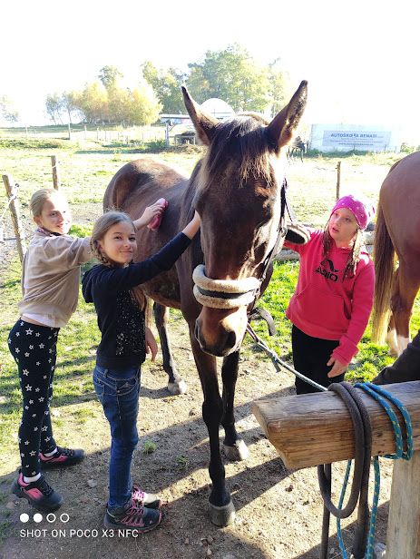 Měli možnost se o koně starat a vyzkoušet si i jízdu na koni. Pak nám kluci připravili ohniště, u kterého jsme si opekli buřty, zazpívali a sdíleli společné zážitky. Den plný pohody a dobrodružství v nás zanechal krásné vzpomínky.