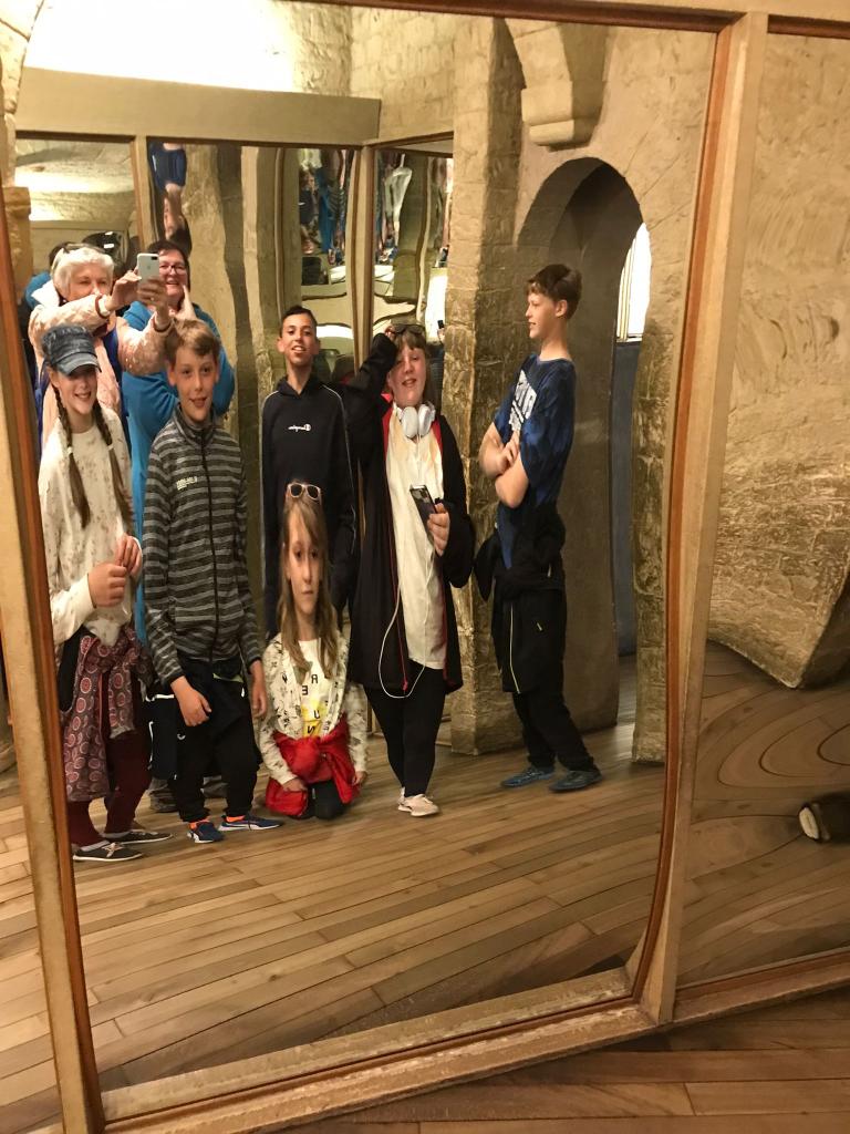 Na Petřín jsme vyjeli lanovkou, zde jsme navštívili zrcadlové bludiště a vylezli na Petřínskou rozhlednu, která se podobá francouzské Eiffelově věži. Poté naše kroky směřovaly k Pražskému hradu, na Karlův most a Václavské náměstí.
