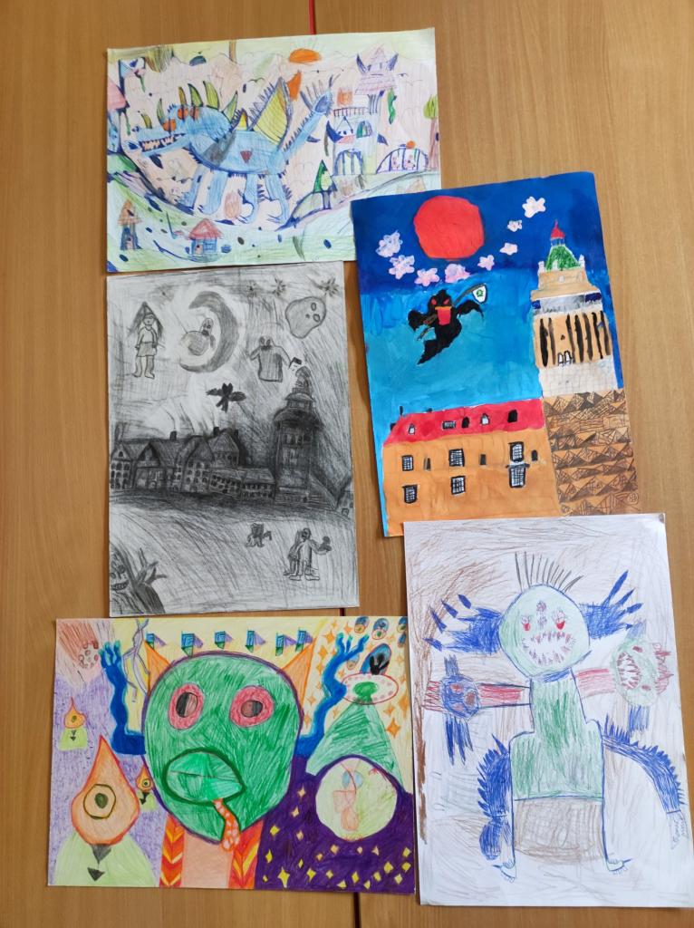 Skoro měsíc a půl pracovaly děti na svých příspěvcích do soutěže. Do výtvarné části se jich nakonec sešlo tolik, že jsme museli udělat malé výběrové předkolo. Protože tématem byly tajemné bytosti a technika mohla být téměř libovolná, práce byly velmi různorodé a předvýběr nebyl ani trochu jednoduchý.